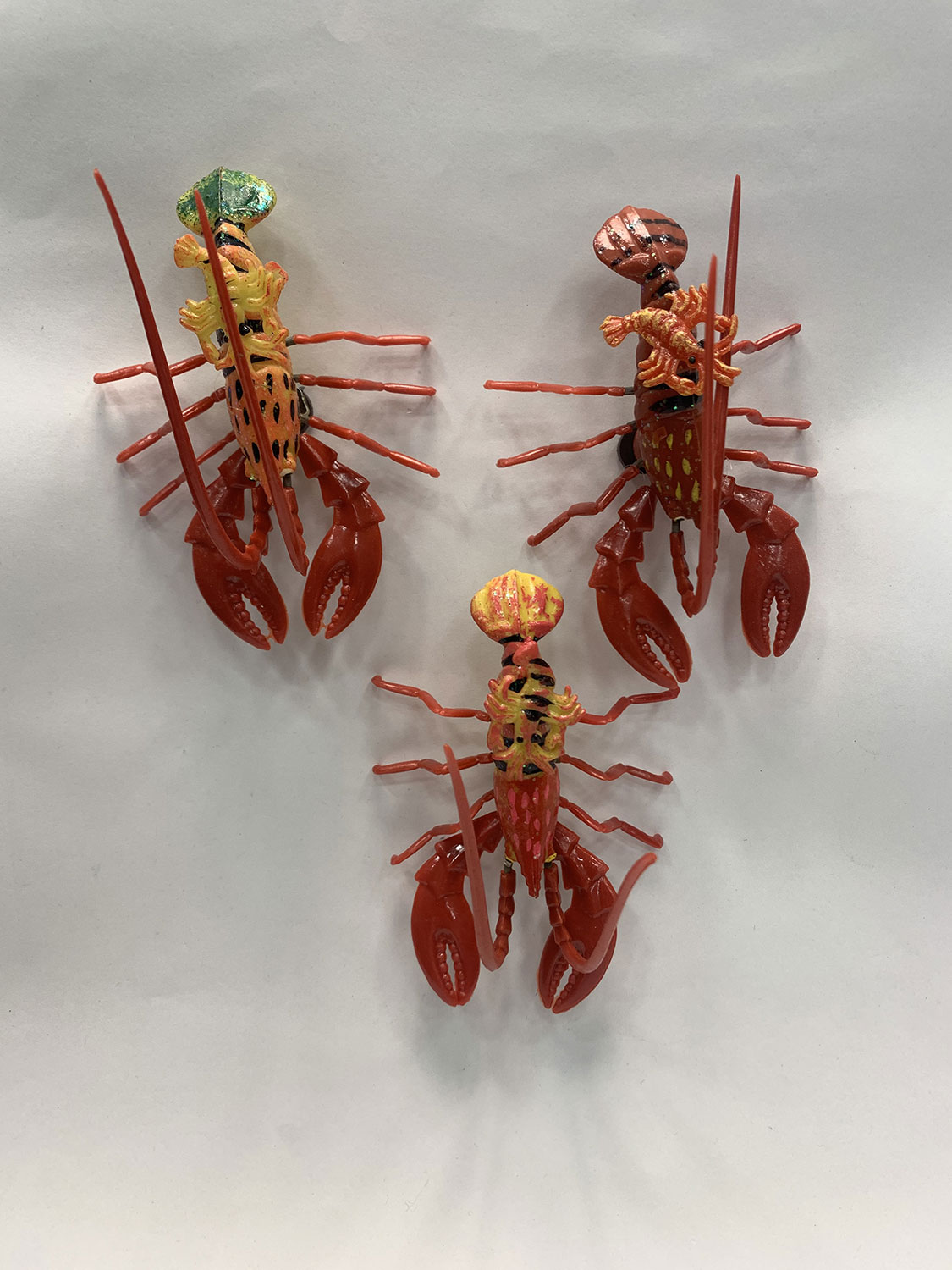 Langosta de mar con hijo. Imán de plástico móvil. Varios colores