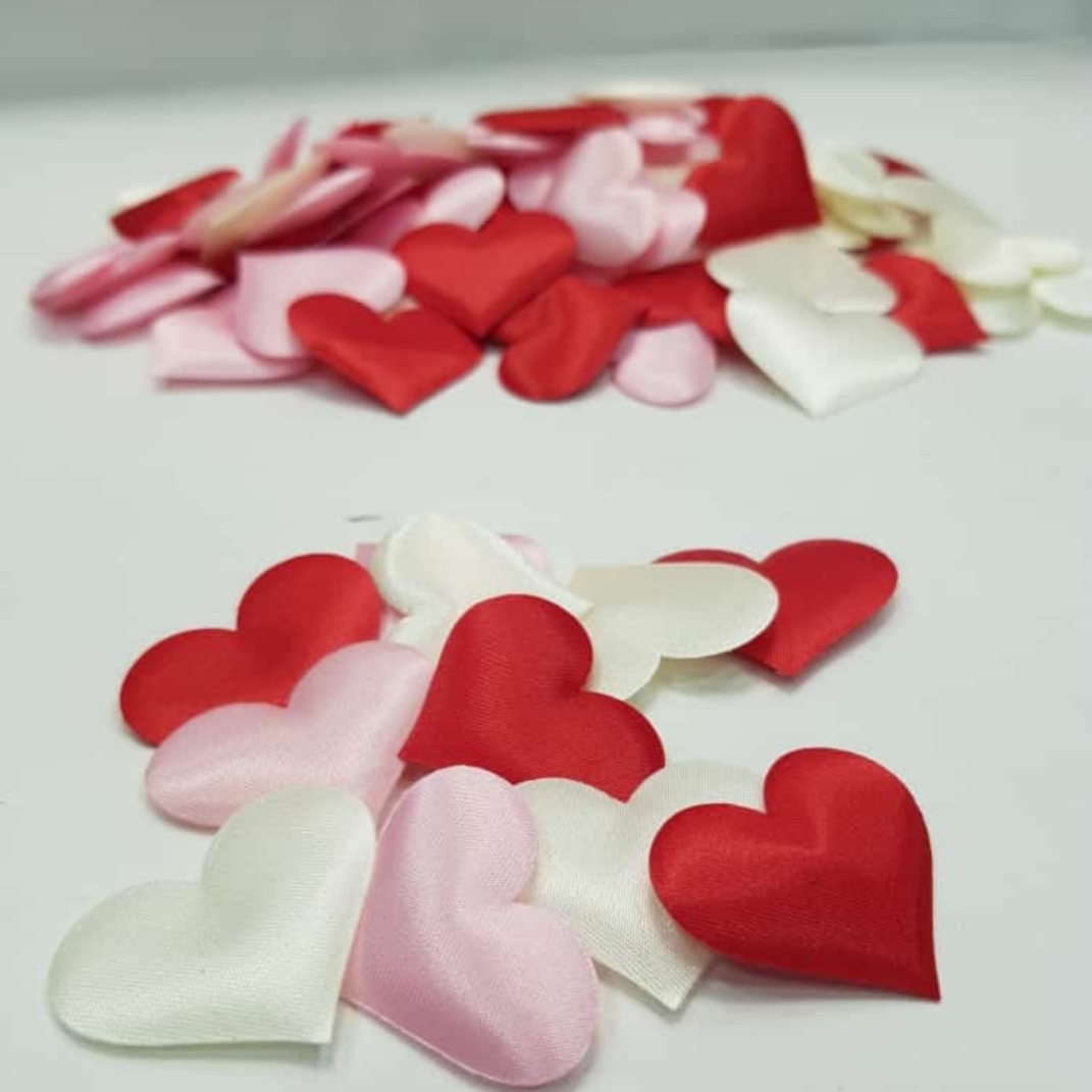 Art. 299 / Cod. 111 Corazones de raso en bolsa 3 colores: Rojo, rosa y marfil x 1000