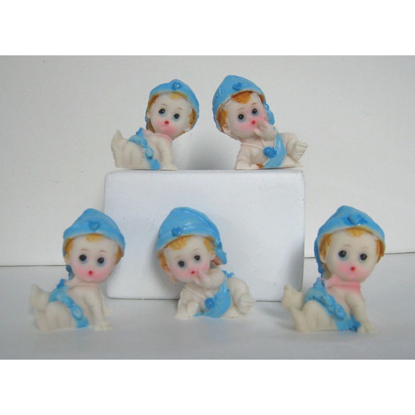 Art. 607 / Cod. MY08 Souvenir bautismal bebe de polirresina recostado. Nena o nene caja x color. 12 x 1200