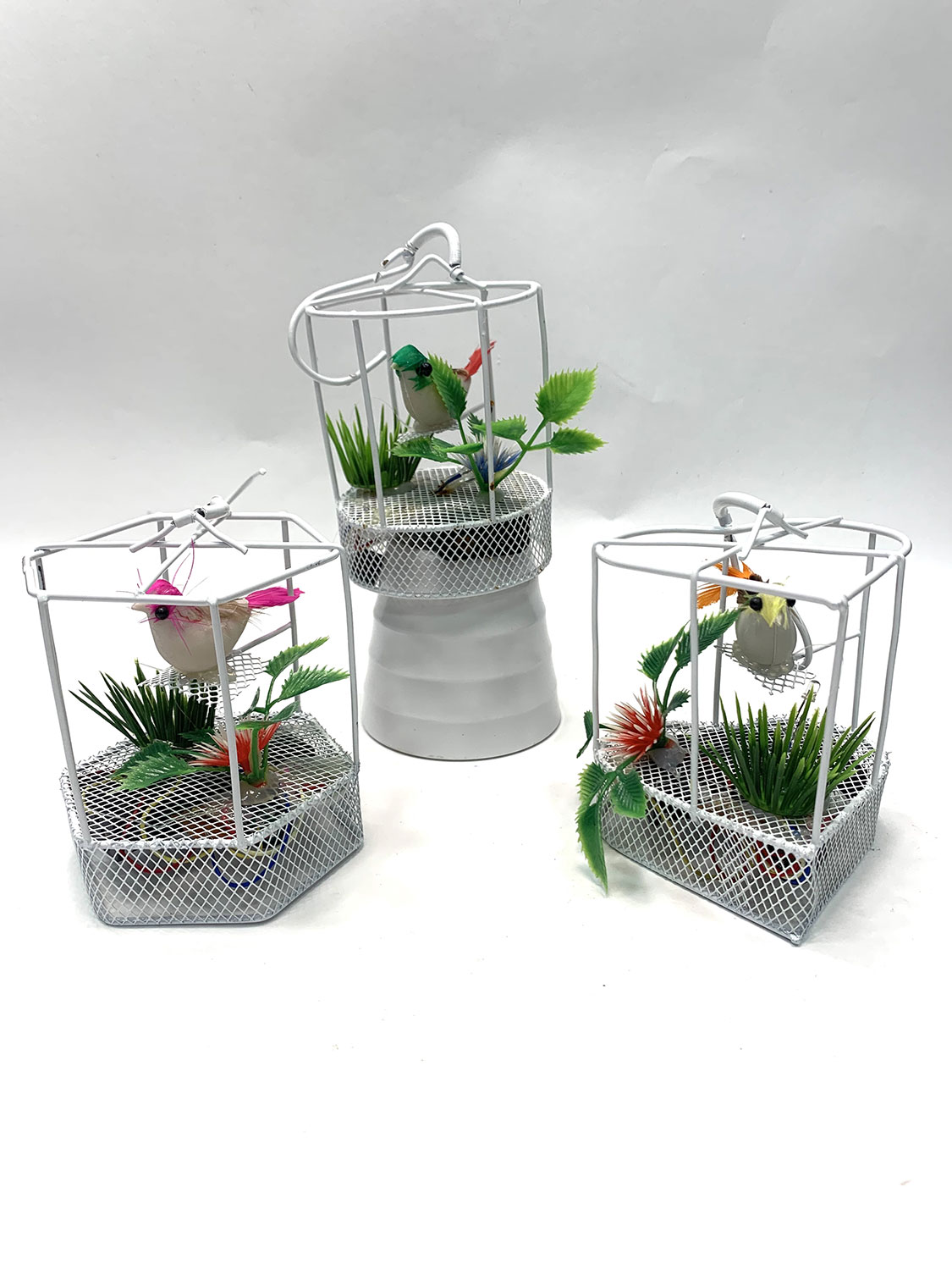 Art. 047 / Cod. Jaula de metal con pajarito con sonido y luz (a pila) Varios modelos x 240
