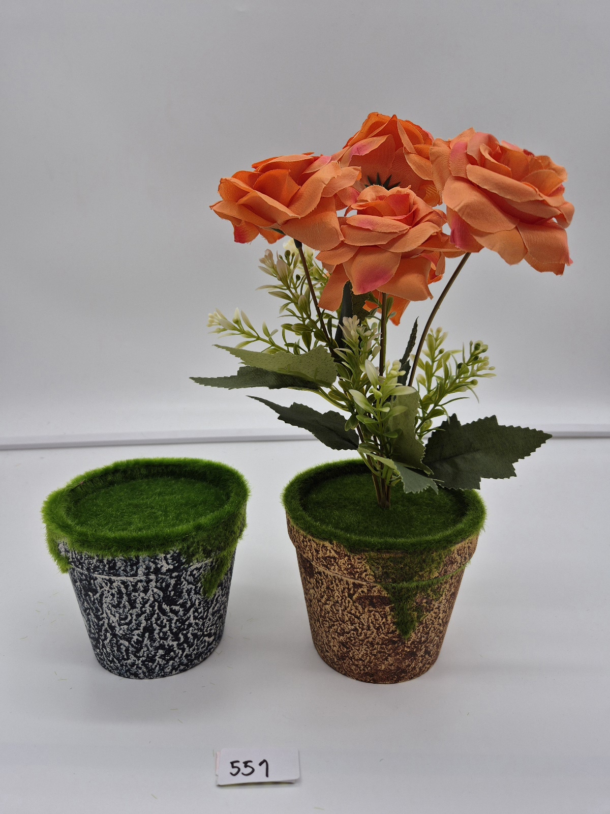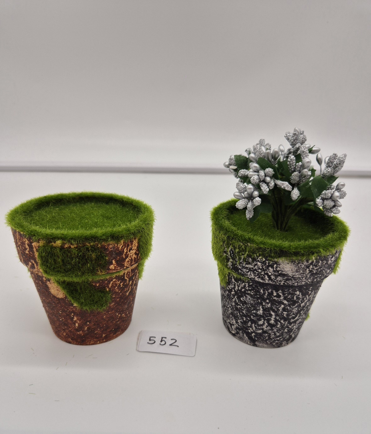 Maceta con pasto, color plata y cobre. (6,8cm)