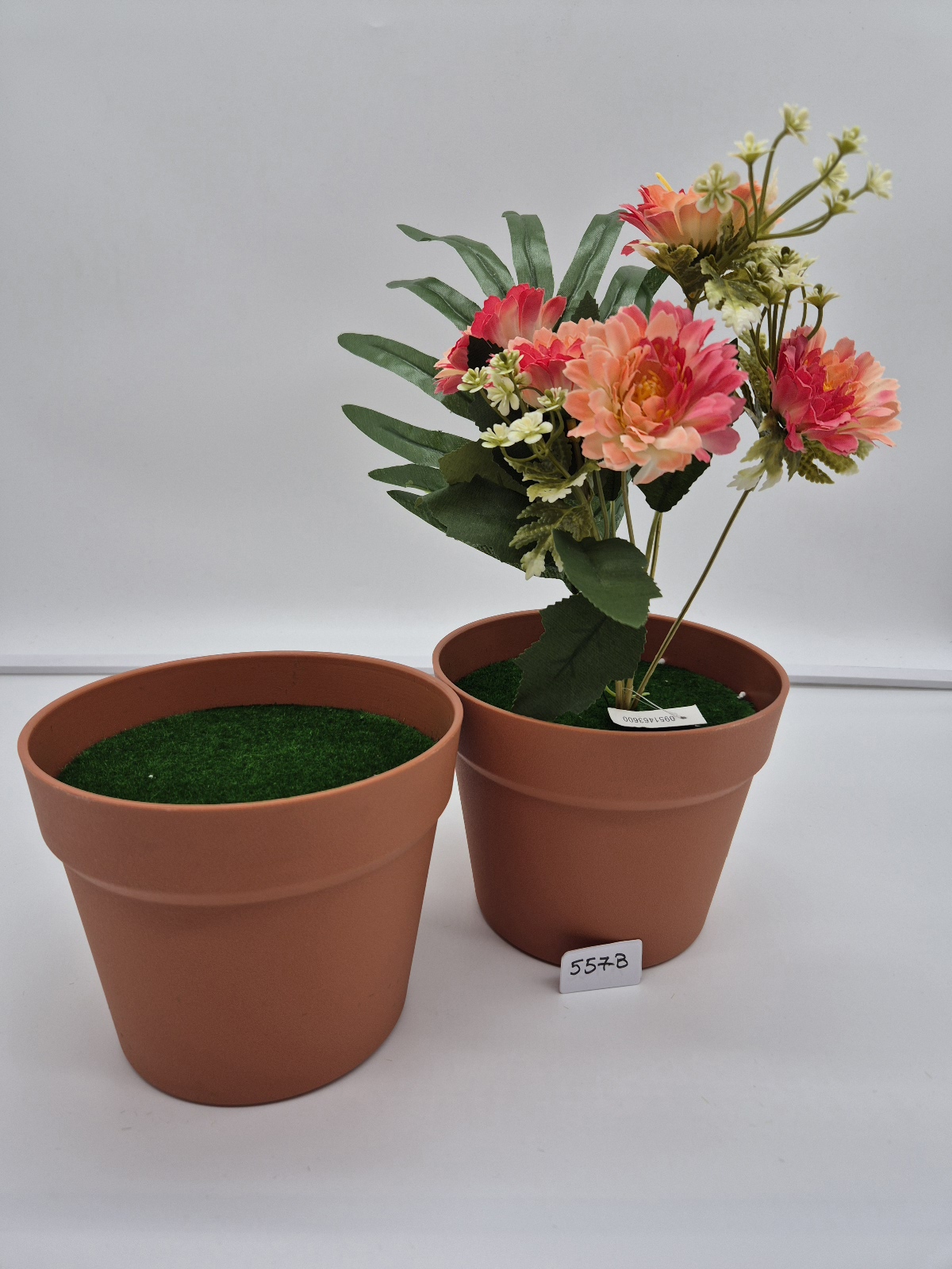 Maceta con pasto, color cobre y plata. (13,5cm)