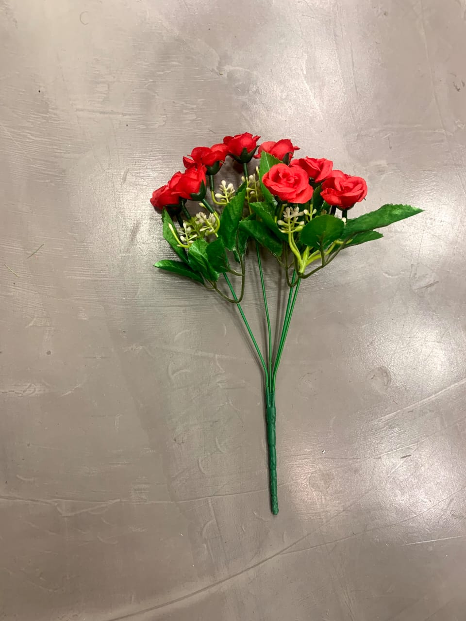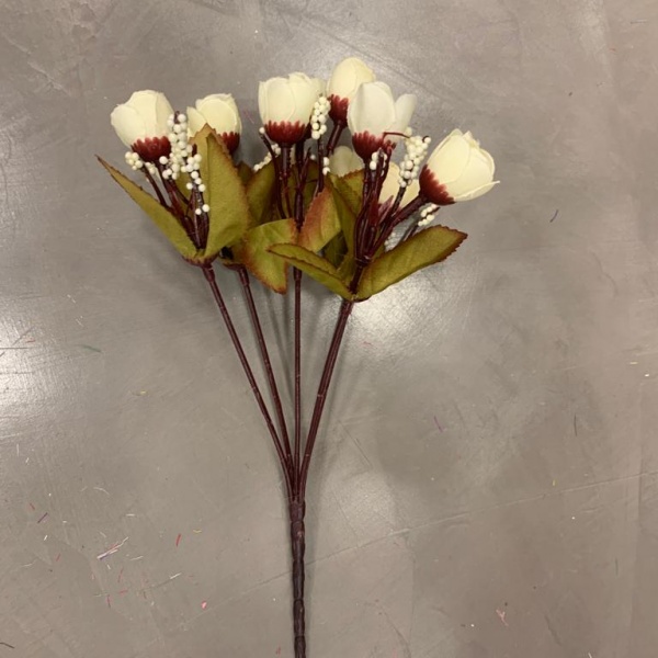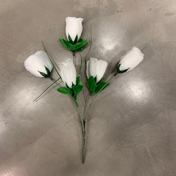 Ramo de pimpollo de rosas de tela con tallo plástico.
