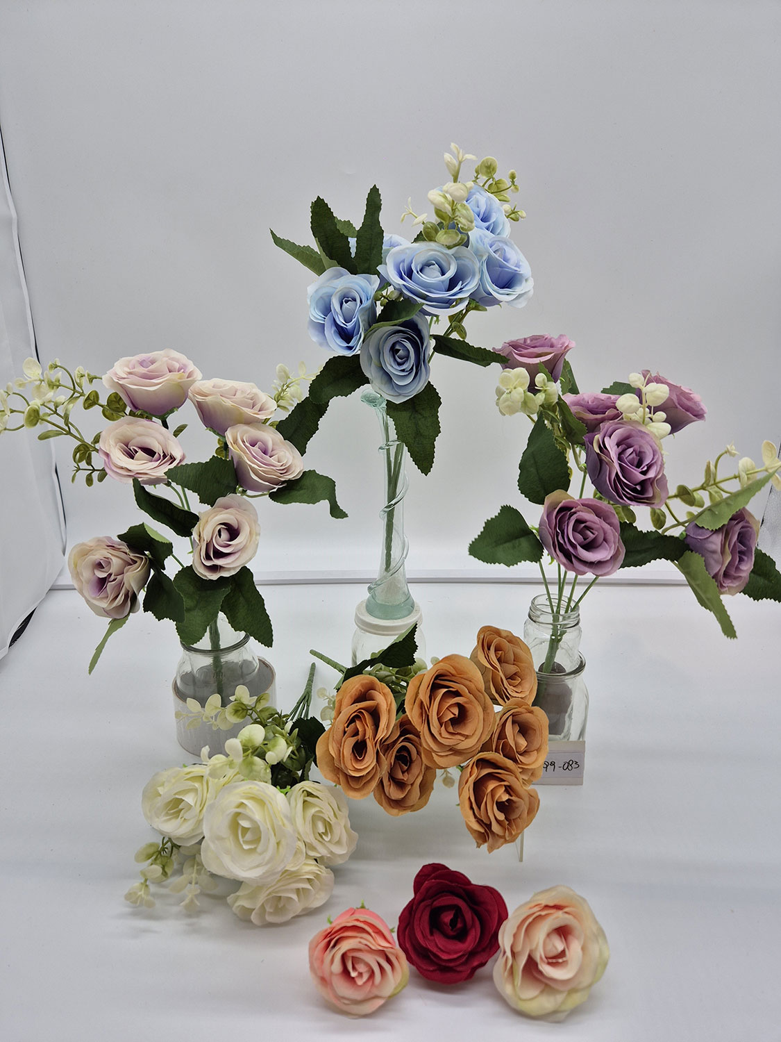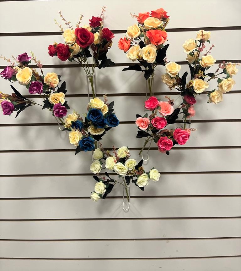 Rosa China x 7 flores de tela con follaje