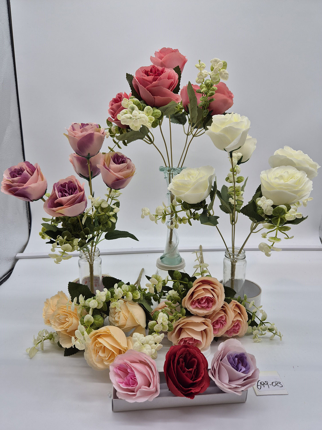 Rosa Inglesa x 6 flores de tela con follaje